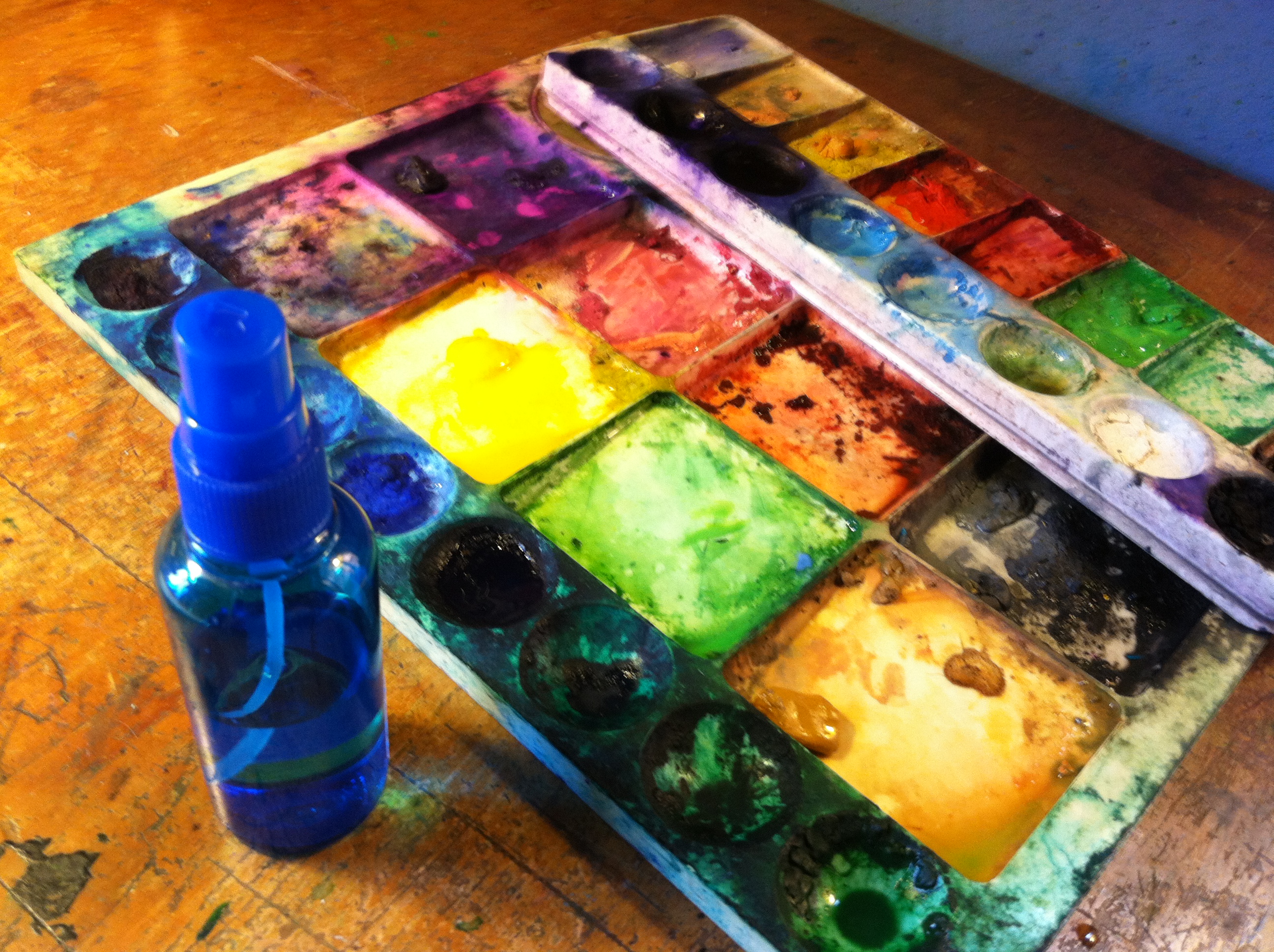 I was amazed at how much easier this spray bottle has made my water color painting. I used to use a big old spray bottle that was always hard to adjust from stream to spray and just was too big. This little bottle I picked up when traveling once has been AWESOME! I just love it, it gets my paints nice and wet, doesn’t fall over on my desk all the time, and works perfect!